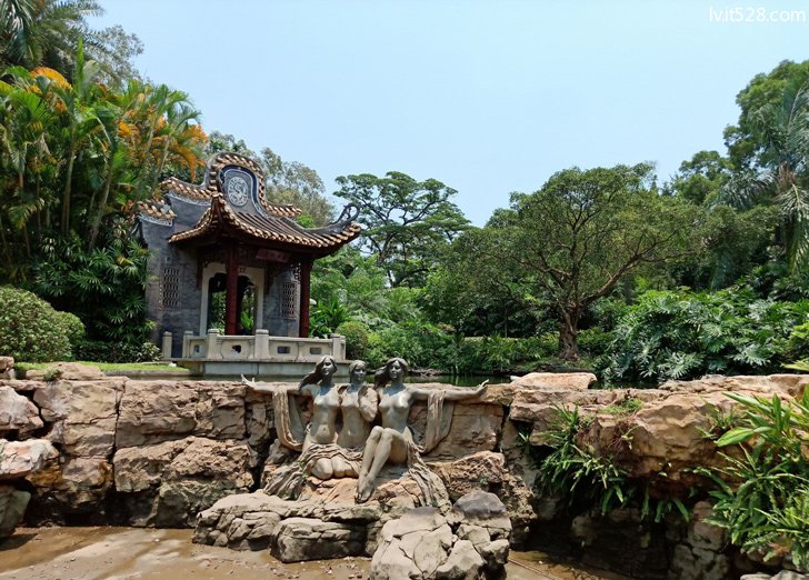 邓世昌衣冠冢。 民族英雄邓世昌(一八四九~一八九四)原名永昌,字正卿,广东番禺人。一 八九四年九月十七日,在抗日本侵略者海战壮烈殉国。邓氏族人葬于广州市沙河天平架石鼓岭邓家山,后因时势变迁,曾被埋没。一九八四年纪念邓世昌殉国九十周年时经沙河镇政府及有关人士支持,寻得邓墓。 适逢甲午战争一百周年纪念之际为弘扬爱国精神,市政府决定将邓世昌墓迁回东郊公园,立邓世昌塑像与墓园以崇英烈,永留后人敬仰。